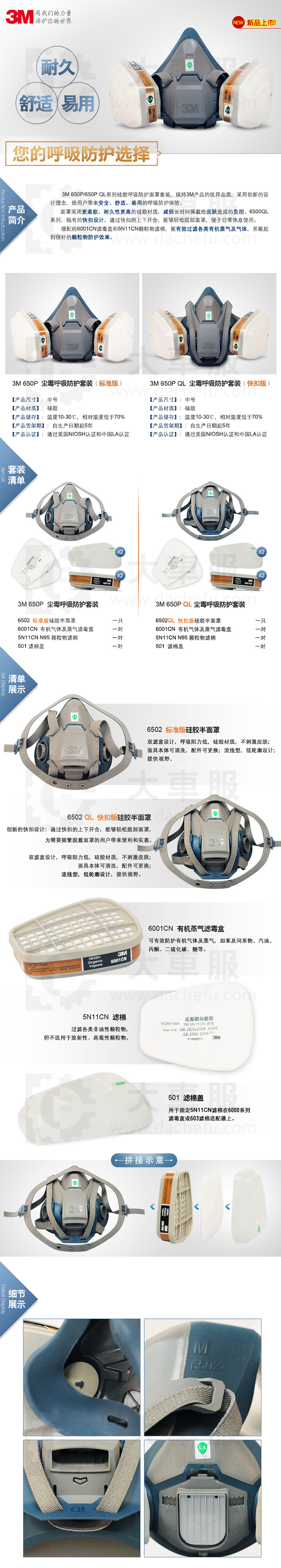 全部分类 > 车品 > 车品详情 > 3M 650P QL尘毒呼吸防护套装
