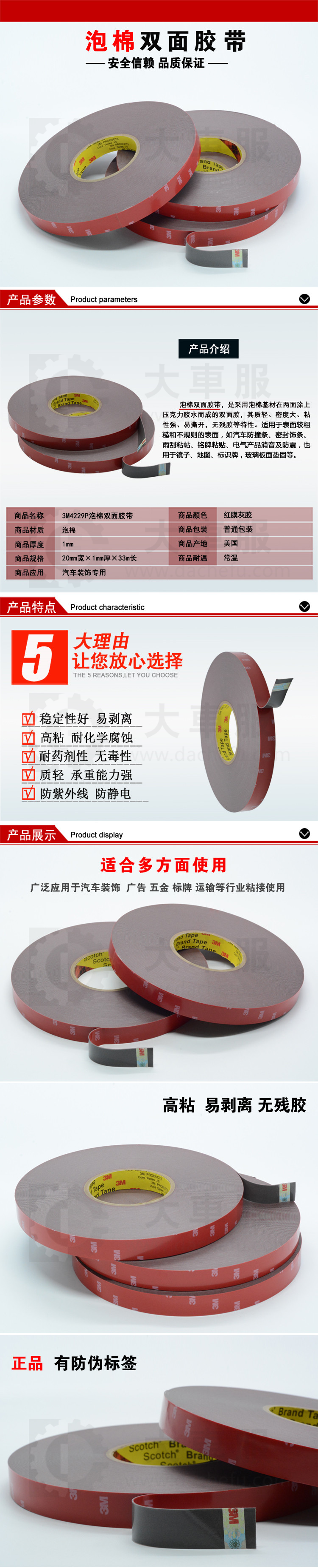 全部分类 > 车品 > 车品详情 > 3M 4229P双面胶-5/6/8/10/12mm